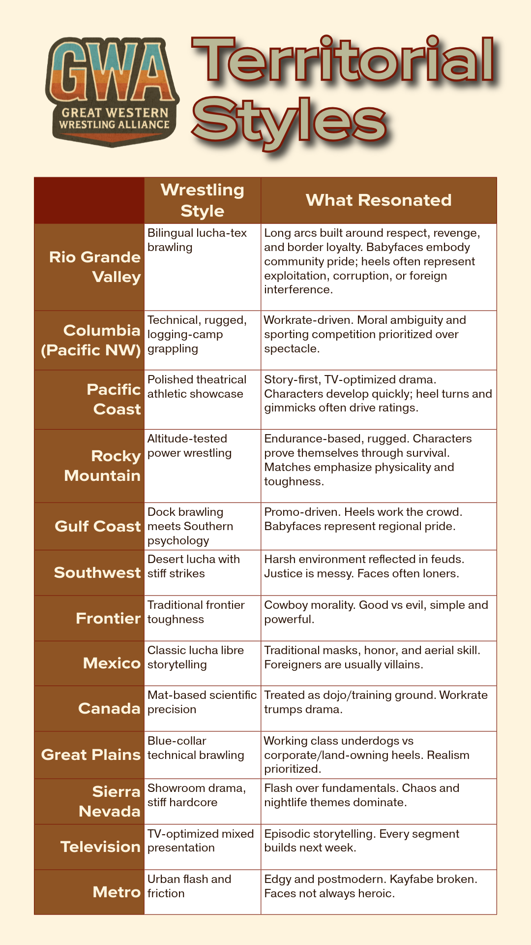 As we follow these stories across the map, remember that every highway mile mattered, every venue had its own personality, and every territory demanded that wrestlers prove themselves not just as athletes, but as storytellers worthy of their landscape's vast and unforgiving stage.